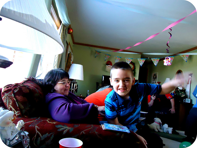| Paul, wanting to be the center of attention. Kayla, opening TONS of presents. |